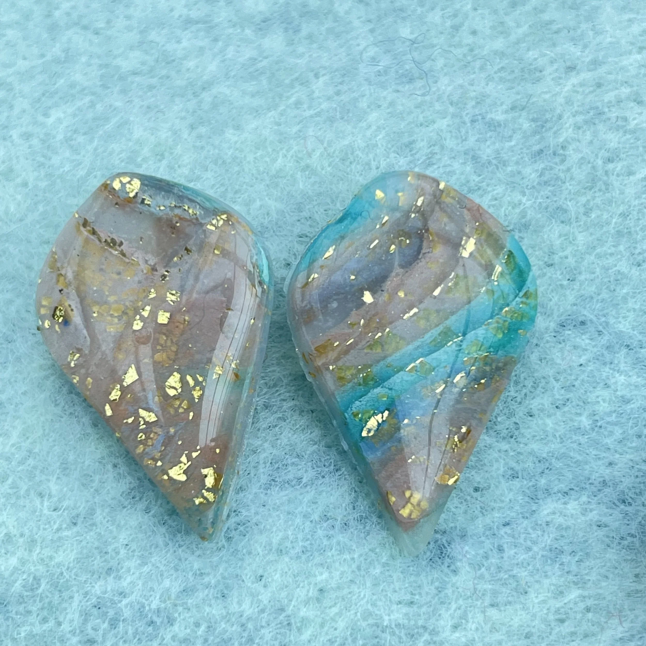 Materials: polymer clay, gold leaf, hypoallergenic studs, resin