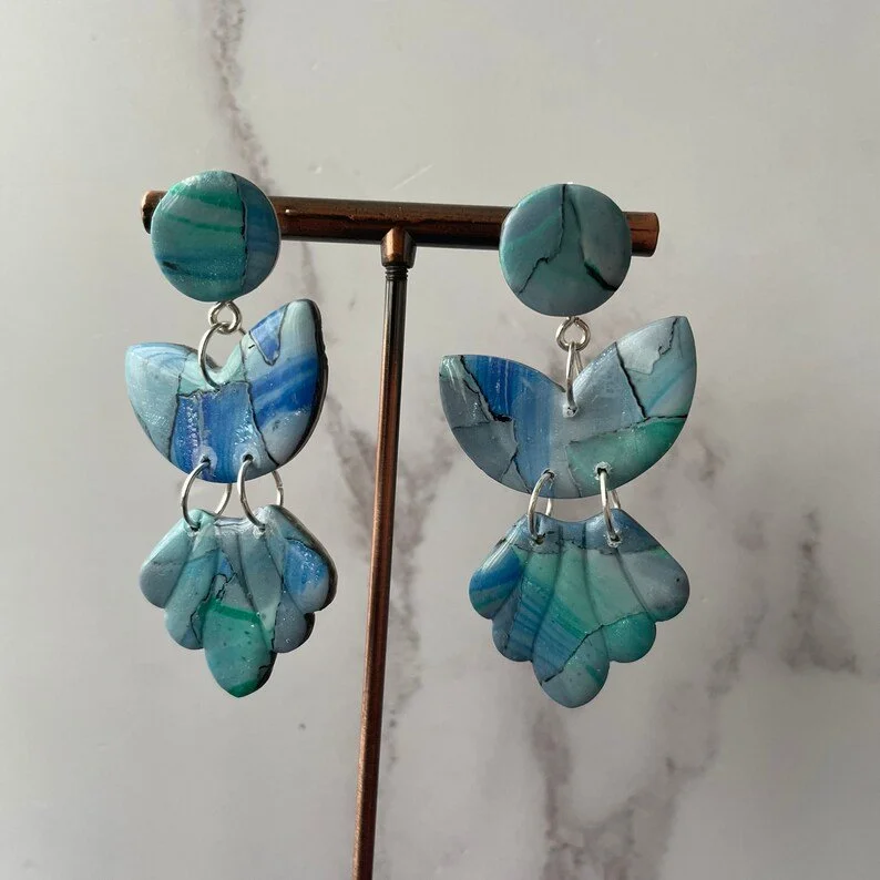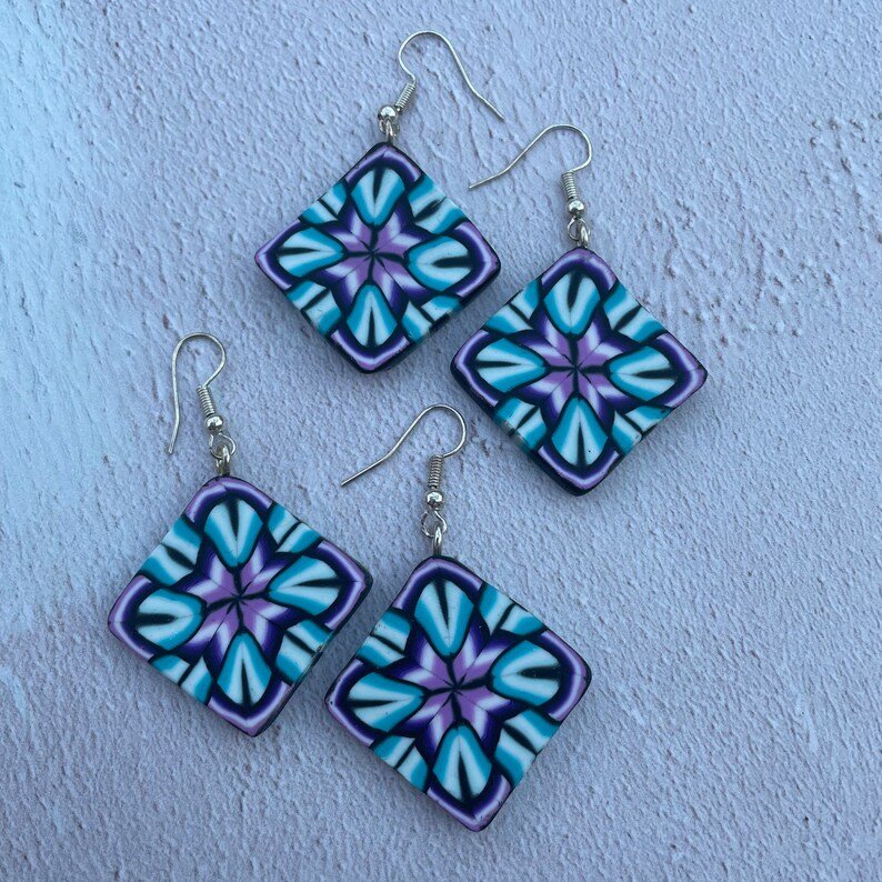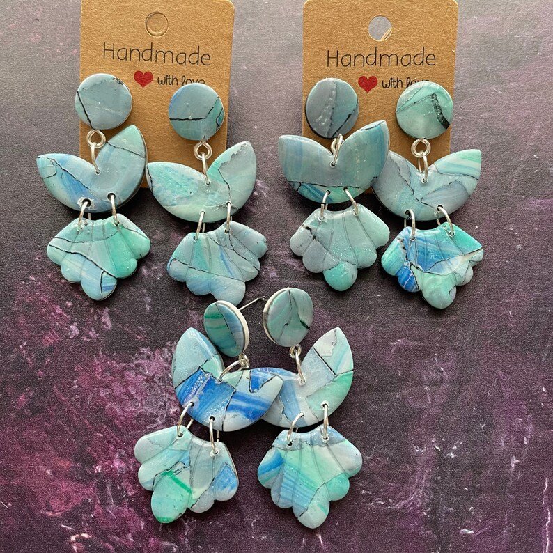 Polymer clay is extremely lightweight and durable, allowing me to create contemporary statement jewellery which is easy and comfortable to wear. Some of these earrings feature patterns made solely by manipulating the clay, while others combine clay with other mixed media.